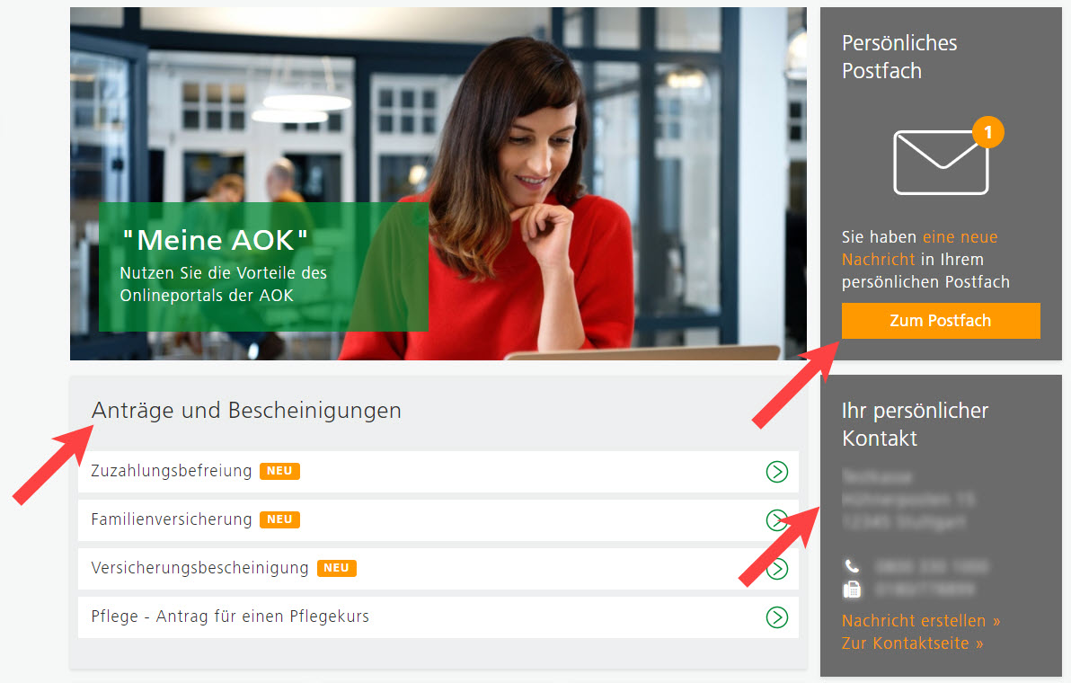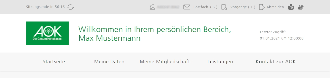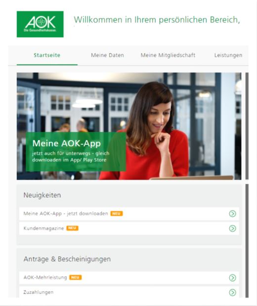 Erst dann können Sie Ihren eigenen AOK-Bereich benutzen.