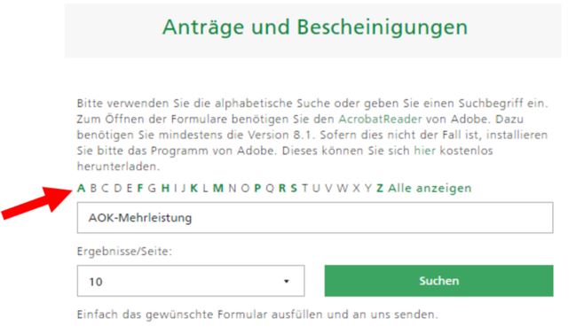 Damit Sie Ihren Antrag schnell finden können, müssen Sie nur auf den Anfangsbuchstaben klicken.